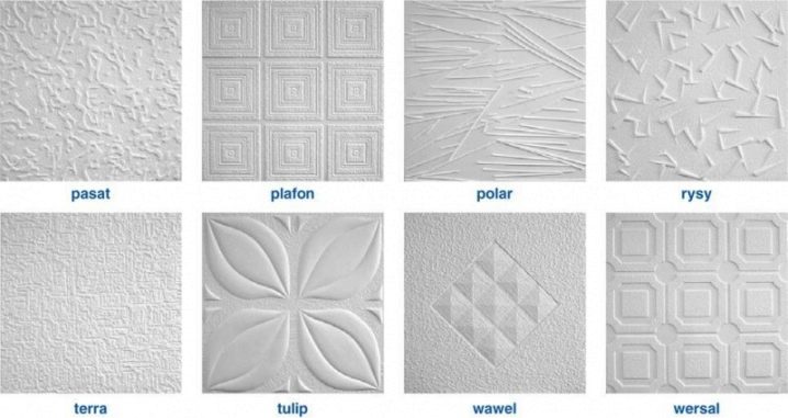 Es ist unmöglich, alle vorhandenen Varianten von Mustern, Texturen und Farben aufzulisten, da die Palette ständig mit neuen Modellen, Formen und Schattierungen aktualisiert wird. Jedes Jahr gewinnt dieser Trend an Dynamik, daher ist es schon ziemlich schwierig, jemanden mit ähnlichen Deckenfliesen zu finden.