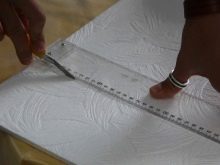 Flächen müssen vollständig nebeneinander liegen, sonst wird die Decke uneben. Jede Kante muss mit einer Genauigkeit von 1 mm ausgerichtet werden, da sich sonst schon wegen dieser kleinen Unregelmäßigkeit alle Beschichtungen bewegendie Decke wird schlecht aussehen, es wird Lücken geben. Dieser Vorgang muss mit allen Elementen der Kachel wiederholt werden.Wenn Sie an die Wände kommen, müssen Sie die extremen Elemente trimmen. Vor dem Trimmen ist es besser, ein Markup auf der Platte anzuprobieren und zu zeichnen. Es ist notwendig, die Fliese glatt zu schneiden, um keine Lücke zwischen der extremen Fliese und der Seitenwand zu bilden.