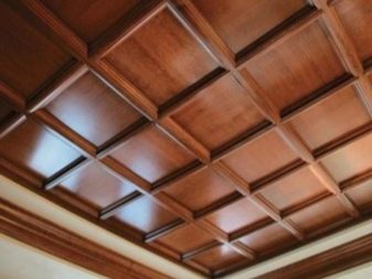 Plastikfliesen sind ziemlich langlebig und von hoher Qualität, aber es ist bei weitem nicht umweltfreundlich. Es ist einfach, sich um eine solche Decke zu kümmern: Kunststoff kann auf verschiedene Arten gewaschen und gereinigt werden. Es hat die Fähigkeit zu verblassen, daher ist dieses Material nicht für Räume geeignet, die mit Sonne gefüllt sind.