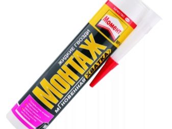 Zum Verkleben werden üblicherweise die üblichen Leimtypen ("Titan", "Moment" oder "Nasat") verwendet. Diese Verbindungen sind ziemlich üblich und haben durchschnittliche Kosten. Einige von ihnen verursachen jedoch Schwierigkeiten beim Steckenbleiben. Zum Beispiel muss nach dem Auftragen des Klebers die Fliese für 5 bis 10 Sekunden an die Decke gedrückt und vollständig verklebt werden.
