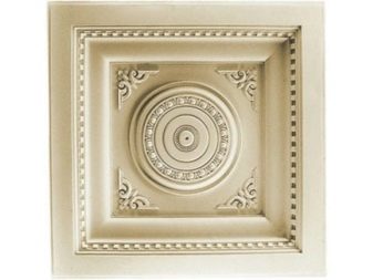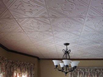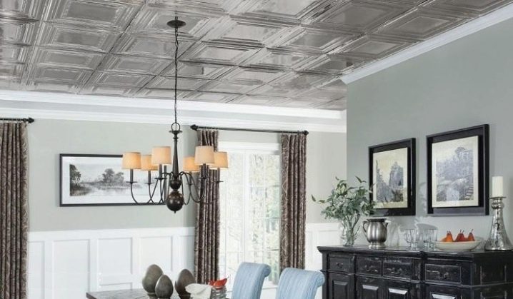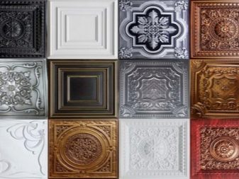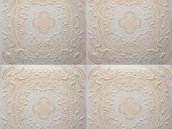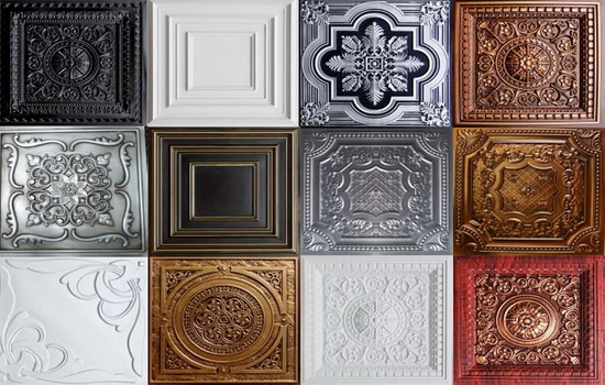 Die neutrale Option ist eine glatte Kachel ohne Muster. Aus der reichen Auswahl, die von modernen Herstellern zum Verkauf angeboten wird, können Sie die Option wählen, die Decke für jeden Geschmack und jedes Budget zu vervollständigen.