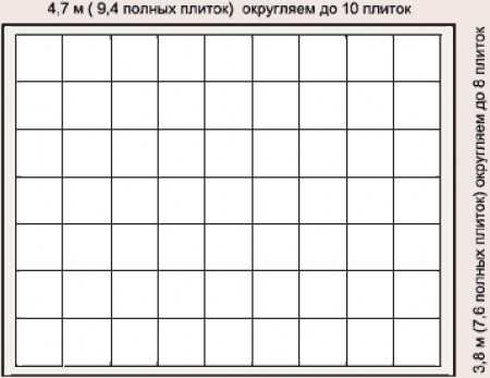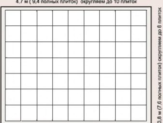 Vergessen Sie nicht, dass es beim Kleben brechen oder sich verschlechtern kann. Es ist notwendig, etwa 10% mehr Kacheln zu kaufen, als Sie kalkuliert haben.