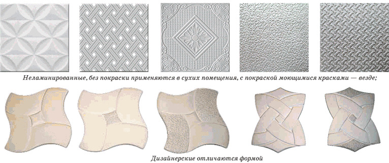 Alle Deckenplattenmodelle unterscheiden sich in ihrer Dichte, Struktur und Zusammensetzung. Betrachte die Haupttypen.