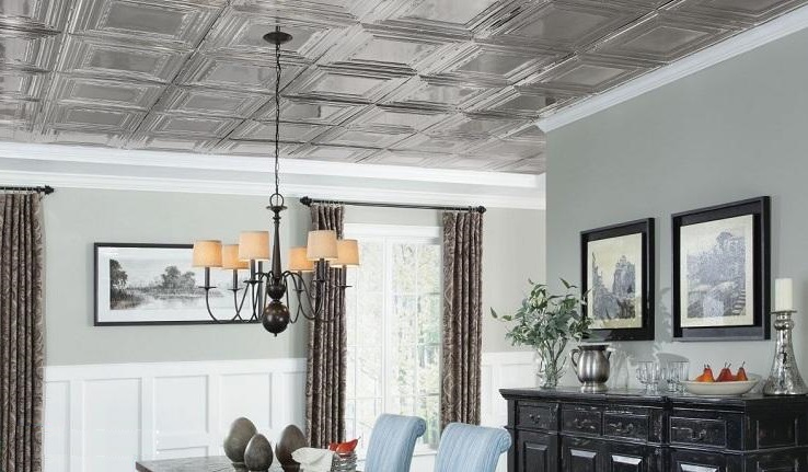 Um Fliesen immer schön auszusehen, müssen Sie sich gut um sie kümmern. Geflieste Decke (besonders geprägt) sammelt viel Staub. Die Oberfläche verdunkelt sich und verliert ihren früheren Glanz. Deshalb Mindestens einmal im Monat ist eine Trockenreinigung mit einem Staubsauger oder einer weichen Bürste erforderlich.