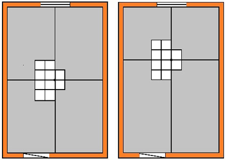 - Das erste Element sollte so positioniert werden, dass es sich in einem Winkel von 45 Grad von jeder Wand des Raums befindet.