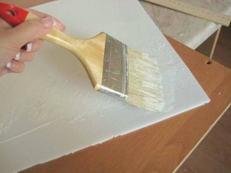 Nach Abschluss des Verlegevorgangs können Sie gegebenenfalls mit dem Anstreichen der Fliesen fortfahren. Es ist am einfachsten, dieses Material mit wasserbasierten Farben auf Acrylbasis zu beschichten.. Um die Fliesen lückenlos mit hochwertiger Farbe zu beschichten, müssen Sie mit einer Schaumstoffrolle arbeiten.