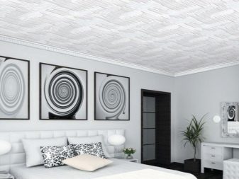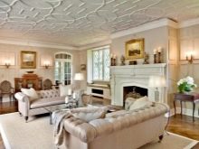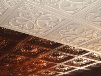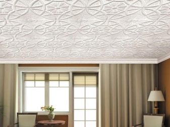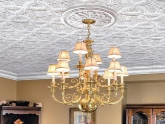 Es gibt auch völlig flache Platten, aber öfter schmückt der Hersteller sie mit dem einen oder anderen volumetrischen Ornament im Sortiment. Darüber hinaus können Sie eine spezielle Decke Sockelleisten aus dem gleichen Material und sogar Steckdosen wählen, die ideal mit solchen Reparaturen harmonieren werden.
