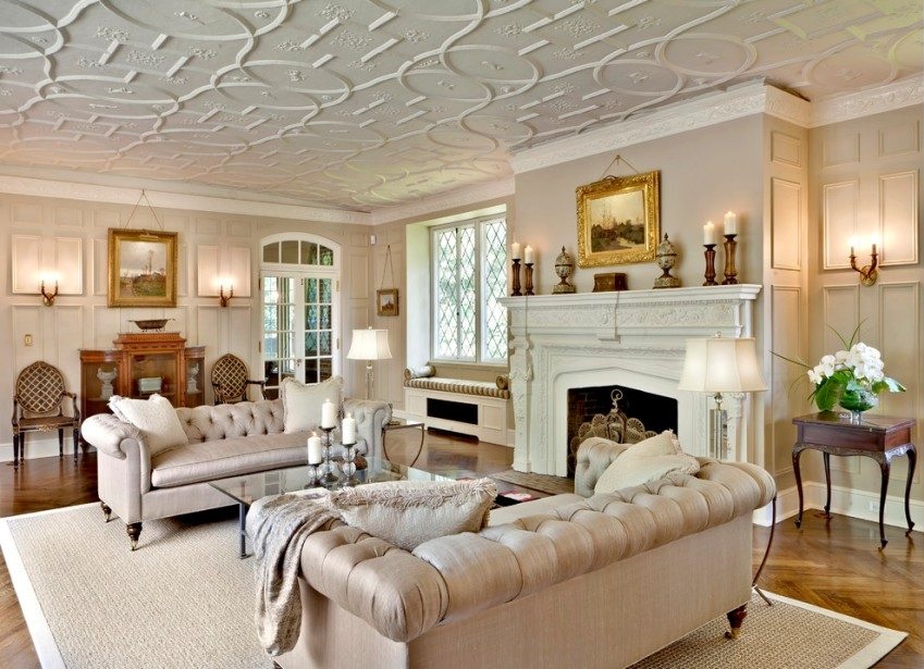 - Hohe Ästhetik der Veredelung - bis zur natürlichen Imitation von echtem Stuck.Im Gegensatz zu abgehängten Decken wird die Höhe der Raumhöhe fast nicht reduziert.