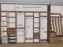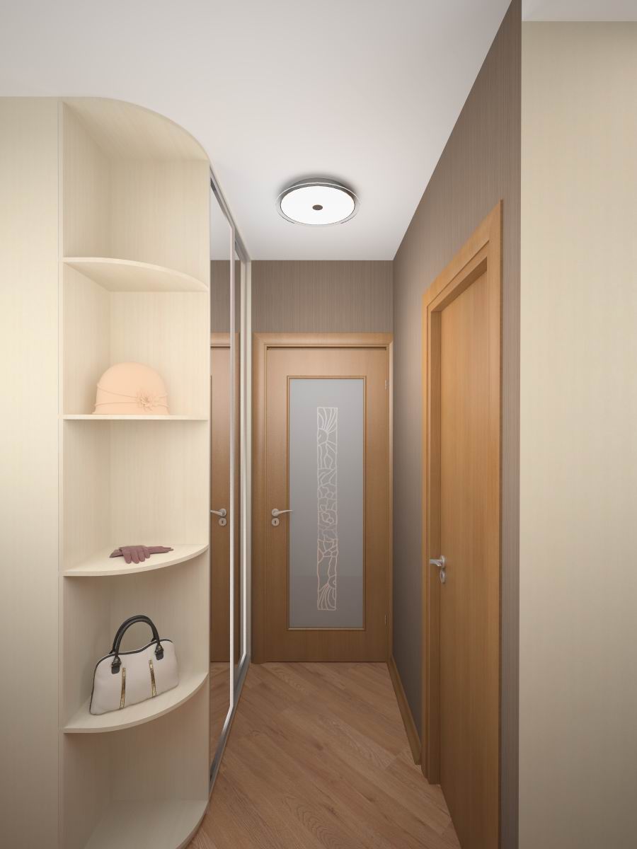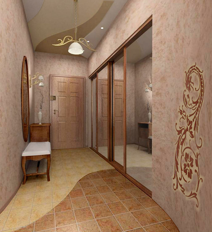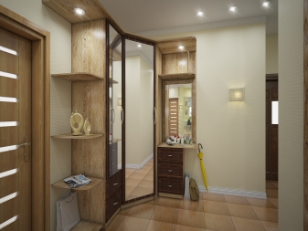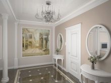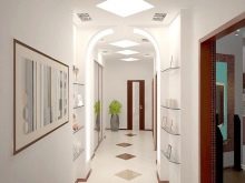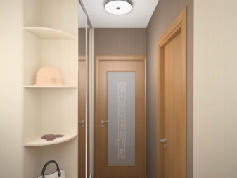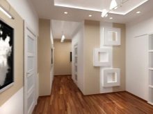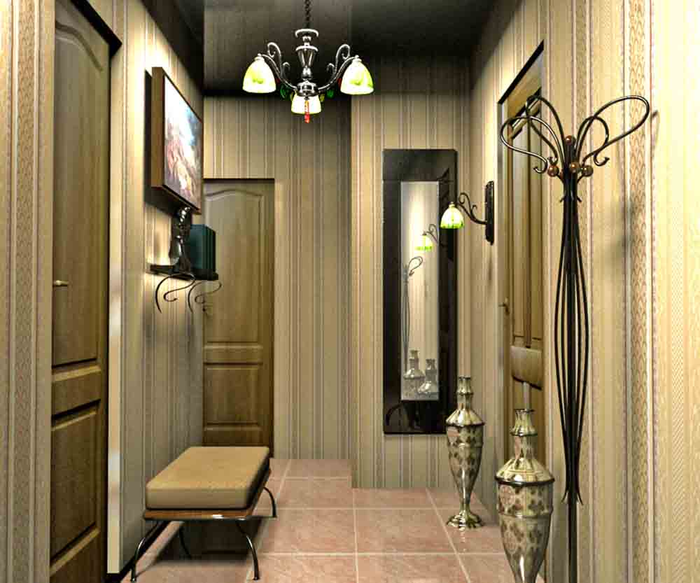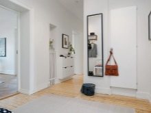 Es ist genug, Kleiderbügel für die Oberbekleidung, einen kleinen Stand für Schuhe und Bänke für pereobuvaniya zu haben. Es ist ratsam, einen großen Spiegel zu hängen: es wird den Raum optisch vergrößern. Sie können eine oder mehrere Türen mit Bögen ersetzen, Türen zur angrenzenden Küche, Wohnzimmer öffnen.