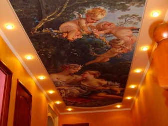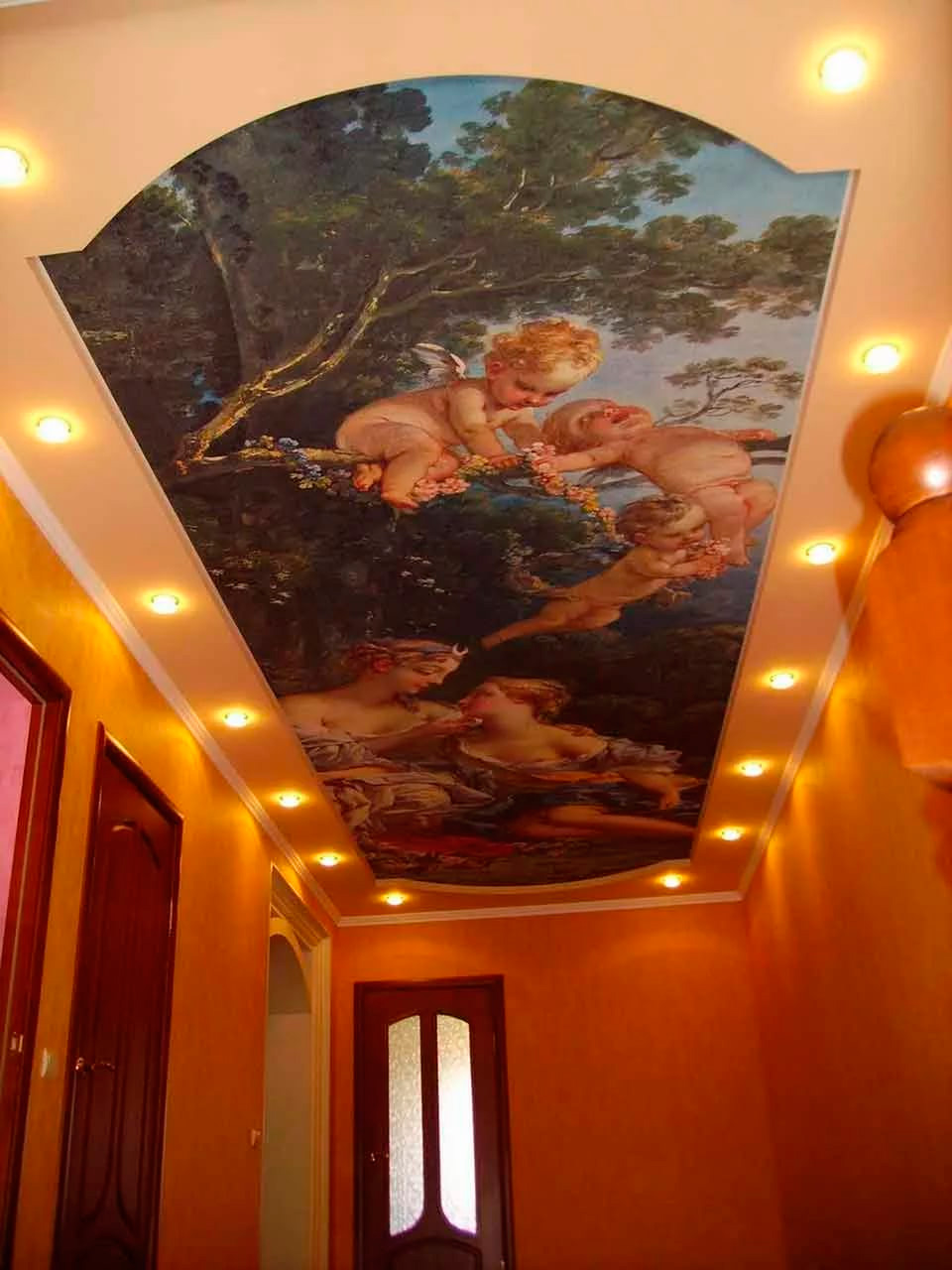 Um ein komplexes Kunstgemälde in klassisch eingerichteten Räumen zu schaffen, ist es notwendig, einen Spezialisten einzuladen. Die Kunstliste wird von professionellen Farben ausgeführt, die Handlung wird basierend auf den Funktionen des Raumes ausgewählt.Die Farboptionen hängen vom Design des Raums ab. Das Gemälde sollte wie ein Teil der inneren Komposition aussehen. Wenn es sich an der Decke befindet, sollte es auf eine besondere Art und Weise dekoriert sein, so dass das Bildbild durch einen Rahmen oder andere Ränder unterschieden wird. Die Gestaltung kann unter Verwendung von Formteilen und Formteilen erfolgen.