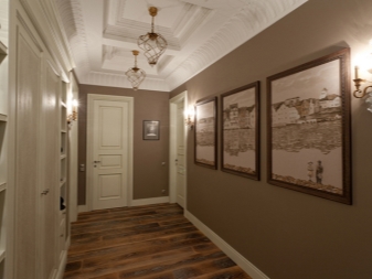 - Die Besonderheit des Korridors einer Dreizimmerwohnung ist das Vorhandensein einer großen Anzahl von Türen. Es ist wichtig, dass sie im selben Stil eines Materials hergestellt werden.