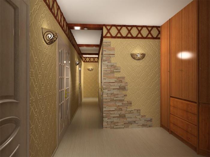 - es ist notwendig, den Korridor in Zonen unter Verwendung einer Kombination von Materialien für den Boden, die Wände und die Decken einzuteilen;