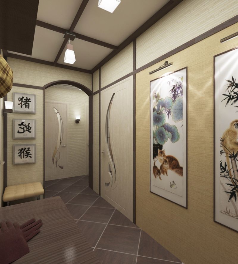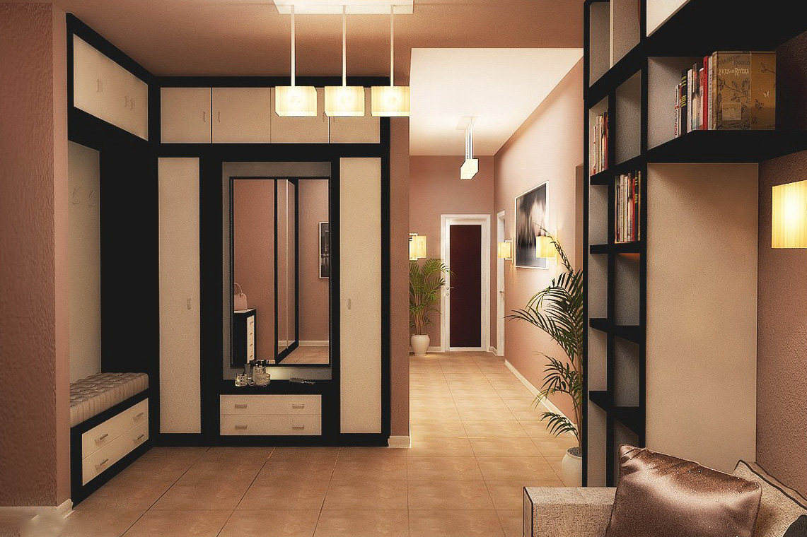 Der Flur ist ein dekorativer und funktionaler Teil der Wohnung. Dies ist das erste Zimmer, in dem die Gastgeber und Gäste untergebracht sind, und der Ort, an dem der Haushalt sich auszieht, einen Marafet hervorbringt. Dies ist der Raum, in dem Oberbekleidung und notwendige Haushaltsgegenstände aufbewahrt werden. Dies ist der Raum, der die Türen zu den Wohnräumen der Wohnung öffnet.