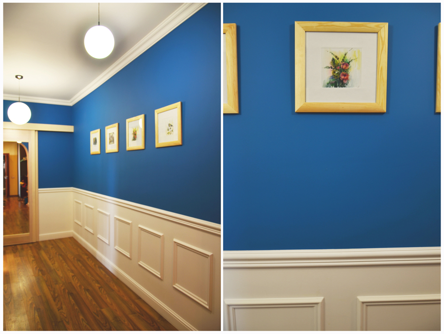 Oft verwendet, um die Wände im weichen Kontrast von zwei Schattierungen zu malen. In diesem Fall streichen oder kleben der untere Teil und die vertikalen Strukturen die Tapete mit einer dunkleren Farbe, und die meisten Oberflächen sind in hellen Farben gestrichen. Es kann ein trendiger skandinavischer oder japanischer Stil in Schwarz und Weiß sein. Deckenbalken, Wandkonsolen, Türen sind in Wenge Farbe getrimmt oder mit Fleck bedeckt, um fast schwarze Farben zu erreichen, blendend weiße Wände sind in einem Rahmen aus schwarzen Linien (der Innenraum ist streng und elegant).
