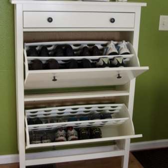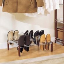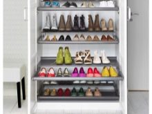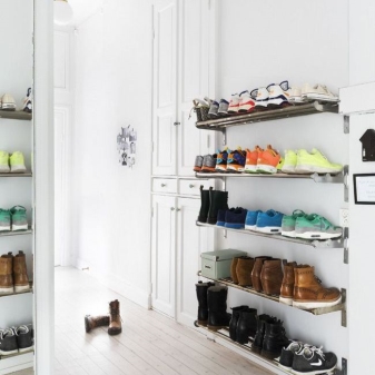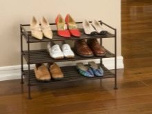 - Die Anzahl der Mieter in der Wohnung. Die Anzahl der Schuhe im Flur hängt direkt davon ab, wie groß deine Familie ist.Wenn es eine ziemlich große Anzahl von Haushalten gibt, dann ist ein solider Holzstapel oder besser als Metall für Sie nützlich. Einige Arten von Kunststoffen unterscheiden sich auch in der Zuverlässigkeit, können jedoch nicht mit den zuvor aufgeführten Materialien verglichen werden.