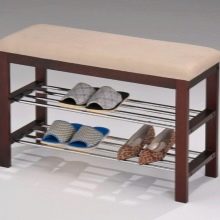 Vielleicht ist dies die praktischste Form solcher Strukturen. Es vereint mehrere Funktionen auf einmal: Es hilft, Schuhe in Ordnung zu halten, lässt Sie bequem im Schuhwerk sitzen und spart zudem deutlich Platz, da Sie keinen zusätzlichen Stuhl oder Ottomane in den Flur stellen müssen. Diese Gelegenheit wird den Besitzern von kleinen Wohnungen garantiert, wo jeder Zentimeter zählt. Das Bücherregal kann schmal oder breit sein, aus Holz oder Metall. Es hängt alles von Ihren Vorlieben ab.