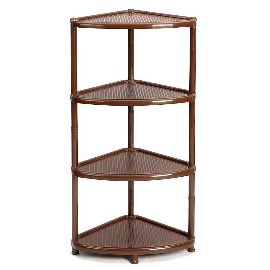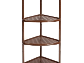 Dies ist eine weitere großartige Option für diejenigen, die Platz sparen möchten. Meistens sind solche Designs aus Kunststoff. Sie sind sehr preiswert und sehen im Flurinneren neutral aus. Das Design und die Farbe dieser Produkte ist fast beliebig.Dies sind kleine Holzregale, die in der Ecke der Wand befestigt sind. Trotz der Ästhetik und Praktikabilität dieser Option hat sie einen erheblichen Nachteil - Sie können ein solches Design nicht übertragen. Dazu müssen Sie es komplett demontieren.