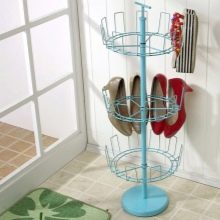 - Das Metallmodell zeichnet sich durch Praktikabilität aus.Um das Produkt vor Korrosion zu schützen, sollte es regelmäßig mit speziellen Mitteln oder Farbe beschichtet werden. Eisenschuhhalter sind nicht beweglich, weil sie schwer sind. Geschmiedete Modelle erregen Aufmerksamkeit mit exquisitem Design. Dieser galoshnitsa wird den Innenflur verzieren.
