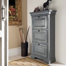 - Eine gute Lösung für einen geräumigen Flur ist Schrank. Es ist geräumig und funktional. Normalerweise sind die Schließfächer für den Flur bis zu einem Meter hoch und die Abmessungen der Regale können unterschiedlich sein. Große Modelle können eine große Anzahl von Schuhen passen. Für jedes Familienmitglied können separate Regale für die Benutzerfreundlichkeit zugeordnet werden. Aber solche Schuhe haben ein Minus. Es ist ziemlich schwierig, ohne zusätzliche Ausrüstung in die oberen Regale zu gelangen.
