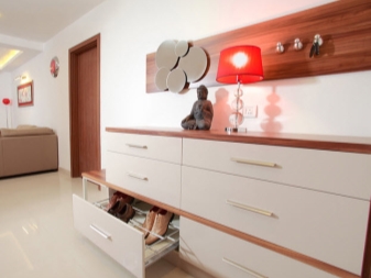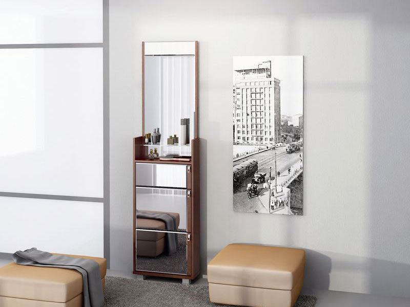 Für kleine Zimmer ideal obuvnitsa mit einem Spiegel. Es wird Ihnen erlauben, den Raum optisch geräumiger zu machen, und Sie können immer Ihr Aussehen überprüfen, bevor Sie ausgehen.