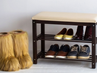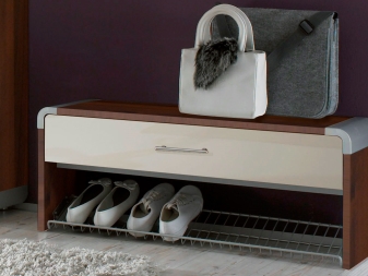 - Einkaufen - offene Version von galoshnitsy.Es ist zum Sitzen und Aufbewahren von Schuhen bestimmt. Große Modelle können mehrere Regale haben. Mit dieser Option können Sie den Flur schnell und bequem reinigen, und die Schuhe sind immer sauber und trocken.