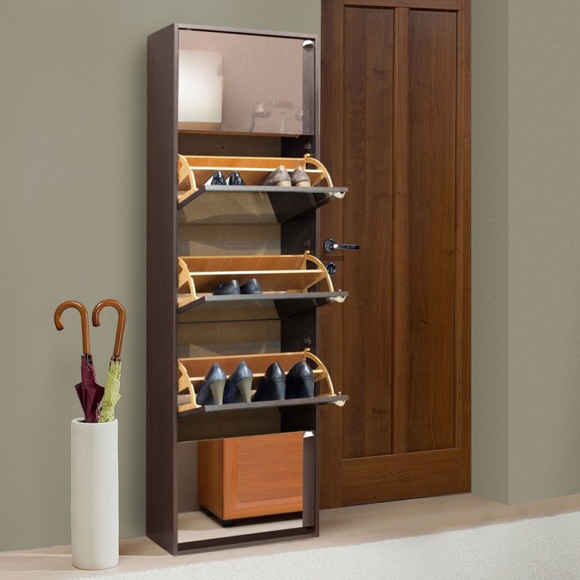 - Platz sparen. Viele Modelle zeichnen sich durch kompakte Größe und geringe Tiefe aus.Vertikale Schuhhalter bieten die Position einer großen Anzahl von Schuhen und nehmen gleichzeitig sehr wenig Platz ein.