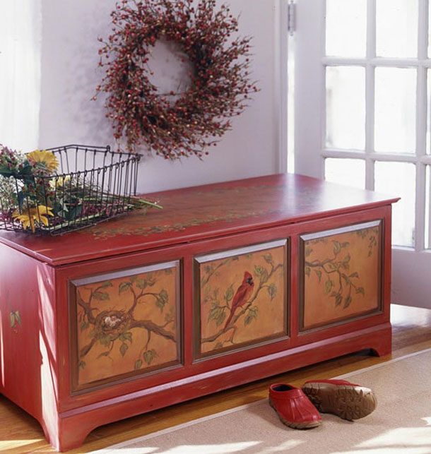- Original und stilvoll im Flur sieht aus Brust. Er dient immer als Dekoration des Innenraums. Es können nur saubere Schuhe aufbewahrt werden. Der Vorteil des Modells ist, dass es bei Bedarf sogar zum Sitzen genutzt werden kann. Oft werden diese Optionen aus natürlichem Holz hergestellt.