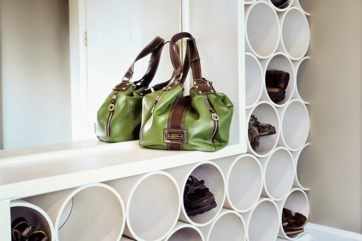 Es sieht interessant aus, Schrank für die Lagerung von Schuhen in Kunststoffrohren. Ungewöhnliche Form, frische Idee und durchdachtes Design erlauben es, einen kompakten und geräumigen Schuhkarton zu schaffen, in dem jeder ein Paar Schuhe anziehen kann.Das Modell hat eine Sitzposition, die auf seine unbestreitbaren Vorteile verweist. Die weiße Farbe der Kombüse wird in verschiedenen Stilrichtungen schön mit dem Interieur kombiniert.
