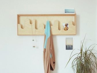 Im Verkauf finden Sie Tausende von Kleiderbügeln, aber keiner von ihnen wird nicht so originell sein wie der, der mit Ihren eigenen Händen gemacht wird. Eine flache Holzplatte und mehrere Kleiderbügel können als Basis dienen: Sie fungieren als Haken.