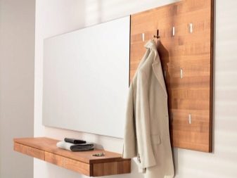 Die Wahl des Wandpaneels hängt von den Maßen des Ganges ab: für geräumig, wählen Sie ein Wandpaneel mit offenen Fächern, für eine bescheidene Größe - ein schmales und langes oder breites Regal mit Haken.