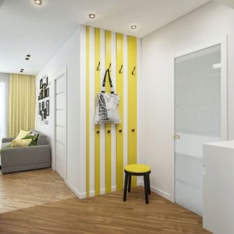 Das moderne Design des Flures lässt der Fantasie freien Lauf: Originalformen und auffällige Farben (rot, gelb) sind akzeptabel. Eines der beliebtesten Reiseziele wurde Industrialisierung und Loft, wo der Metallbügel in Form eines Wasserrohres oder Schraubenschlüssels passt.
