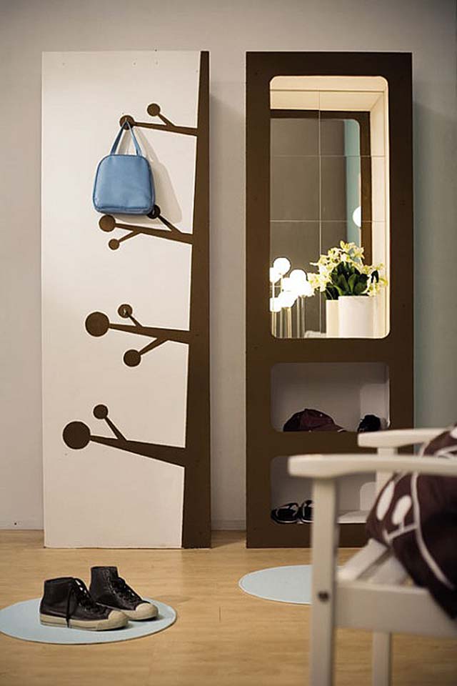 - Das Design der Struktur kann den Stil des Korridors und sogar die Zugehörigkeit des Kleiderbügels selbst betonen: für Erwachsene oder junge Gäste (für Kinder hängt er niedrig und hat das passende Finish).