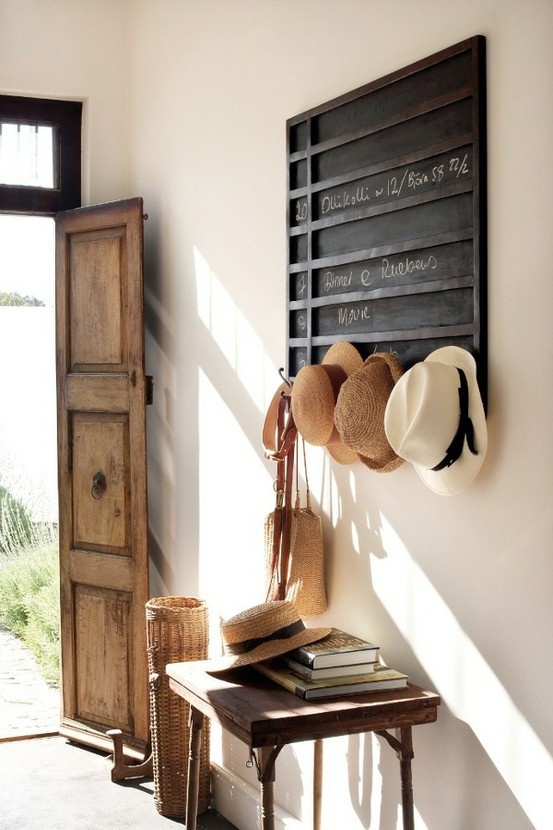 Der Wandaufhänger oder das Paneel kann aus Holz (Massivholz oder Holzplatte), Metall, Kunststoff oder einer Kombination von Materialien hergestellt sein. Die Verwendung einer Holzplatte mit minimaler Verarbeitung und einer Reihe von Haken wird zu einer umweltfreundlichen und ungewöhnlichen Lösung: einfach in der Ausführung oder originell: Schlüssel, Notizen, Tiere, geometrische Figuren, Tischobjekte.