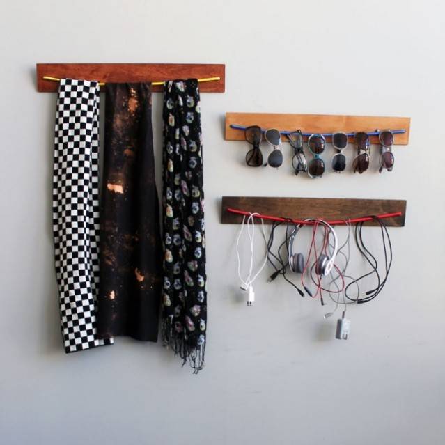 Diese Elemente können als separate Haken fungieren und an der Wand oder der vorbereiteten Holzplatte befestigt werden.