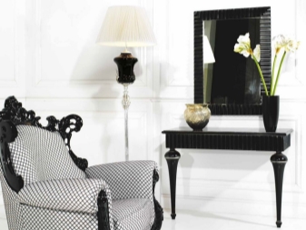 Als Dekor kann die Schnitzerei, Vergoldung, eine Patina verwendet werden. Oft werden Tische mit Boxen mit geformten Griffen geliefert, haben einen Spiegel im Set. Auch in diesem Stil ist es angebracht, ein Konsolenbild an der Wand anzubringen, das die Tischplatte mit Vasen, Lampen und anderen dekorativen Elementen verziert.