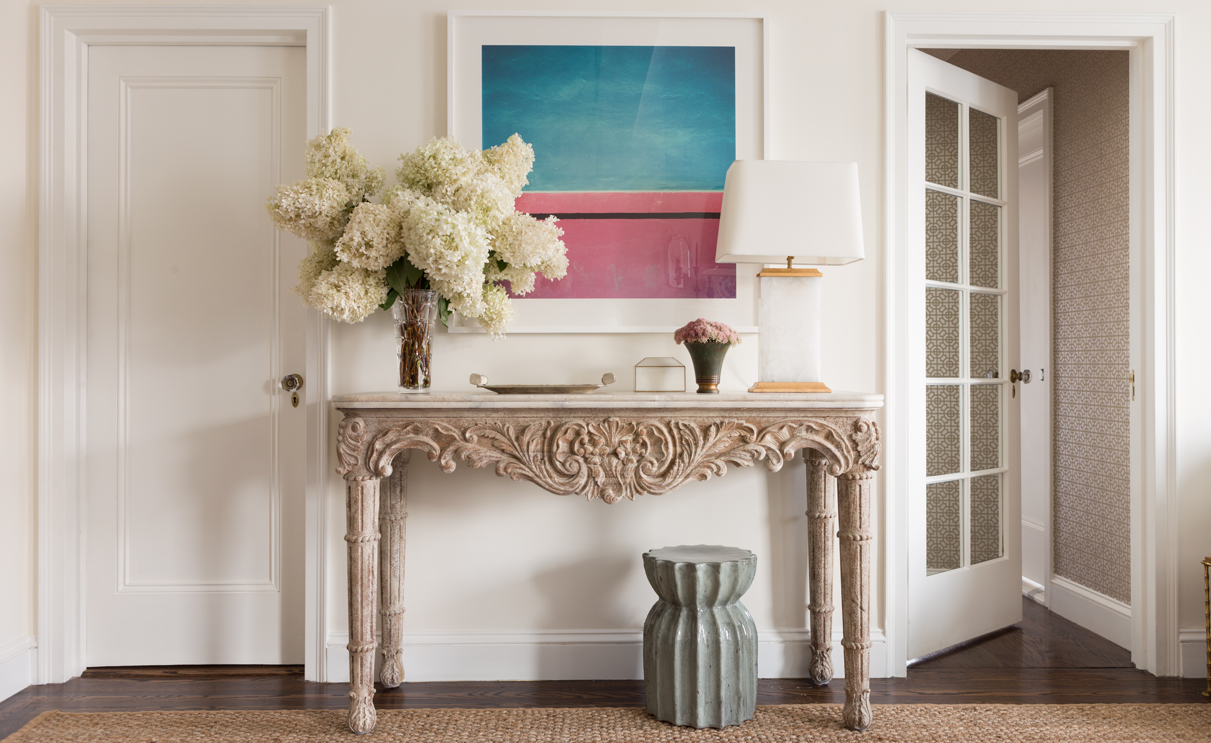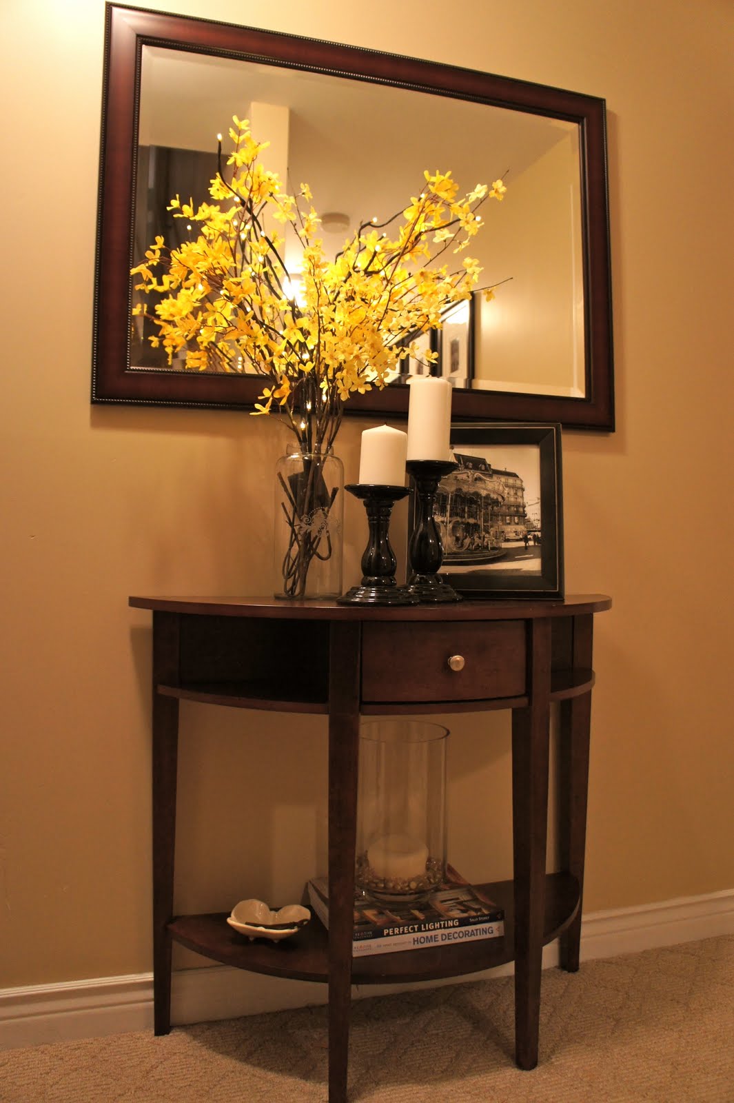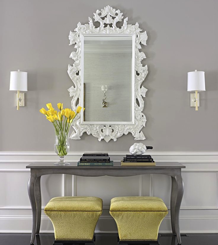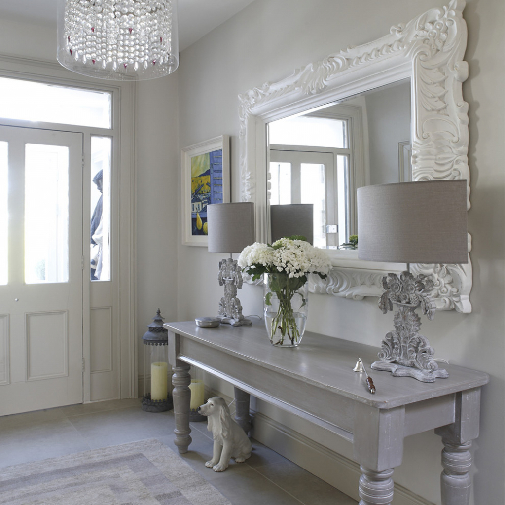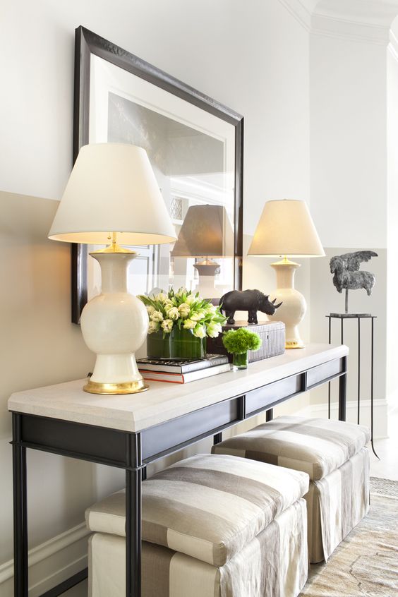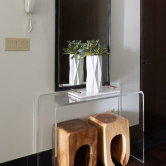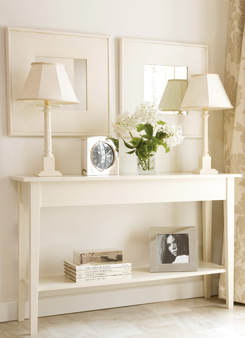 - Stil Die Konsole ist in der Lage, das Interieur zu verändern, ihm Leichtigkeit und Ausdruckskraft zu verleihen. Es kann ein Detail werden, das die Integrität der Situation harmonisch ergänzt oder zu einem echten Highlight des Raumes wird. Es ist wichtig, dass der Stil des Tisches mit dem Gesamtkonzept des Flurs übereinstimmt. Um den Effekt der Kultiviertheit zu verstärken, können Sie eine Konsolentabelle mit einem Spiegel in einem Rahmen eines ähnlichen Entwurfs, eines Bildes oder eines Lampenpaars hinzufügen. Sie können auch Tischuhren, Topfblumen, Fotos von gerahmten Familienmitgliedern und ähnliche Kleinigkeiten als ergänzendes Dekor verwenden.