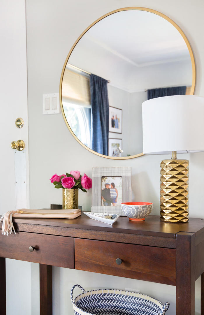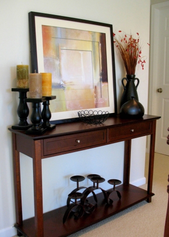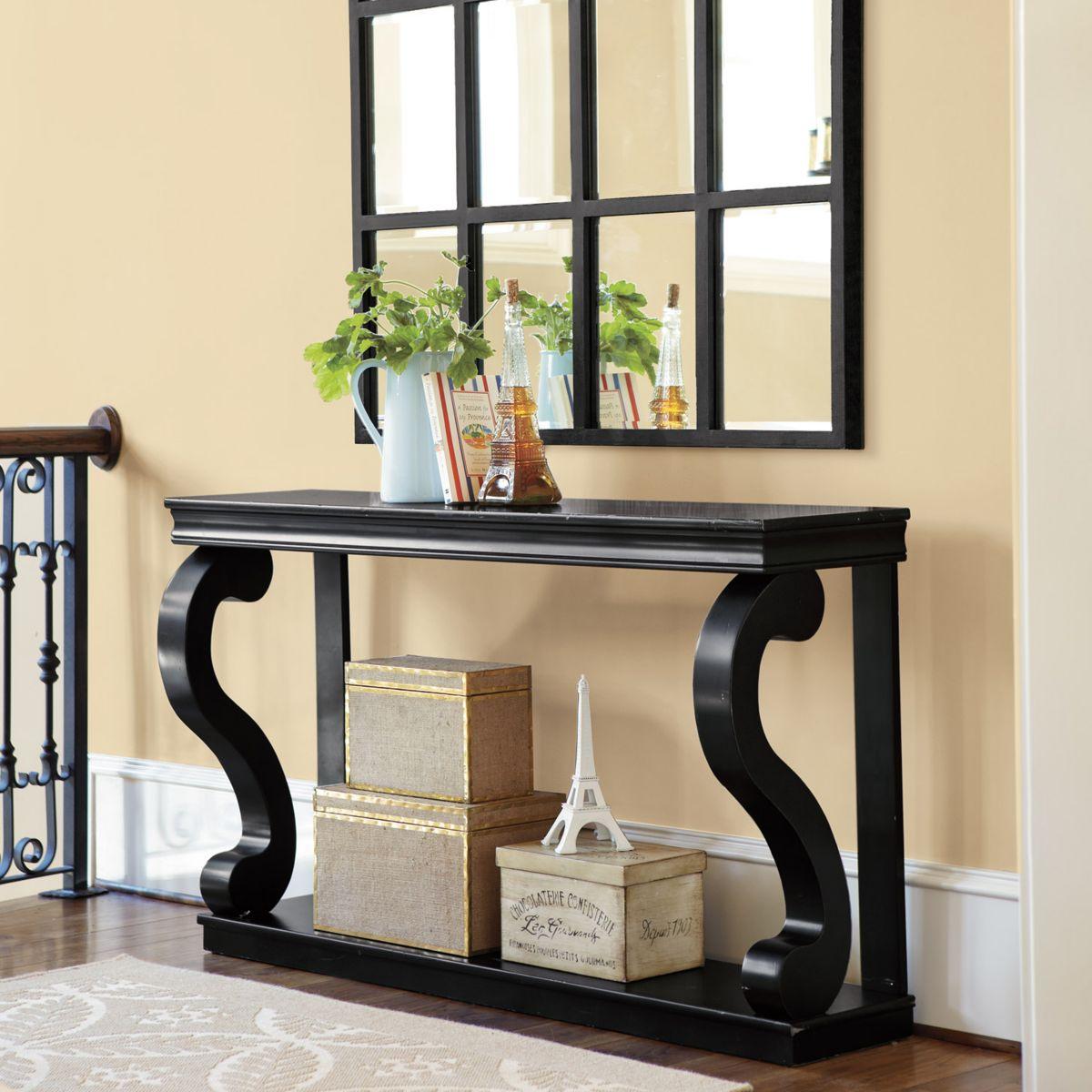 Denke darüber nach, welche Gegenstände du auf den Tisch legst. Seine Größe sollte ausreichen, um Dinge auf der Tischplatte zu halten, ohne Gefahr zu laufen, aus einem engen Raum zu fallen. Vielleicht ist es ein Stand für ein Telefon zu Hause oder eine schöne Vase, oder vielleicht planen Sie, eine Tasche auf den Konsolentisch zu legen. Im zweiten Fall sollte es sich in der Nähe der Eingangstür befinden. Je nach Layout können Sie die eckige oder lineare Option wählen, aber auf jeden Fall sollte es breit und geräumig sein.