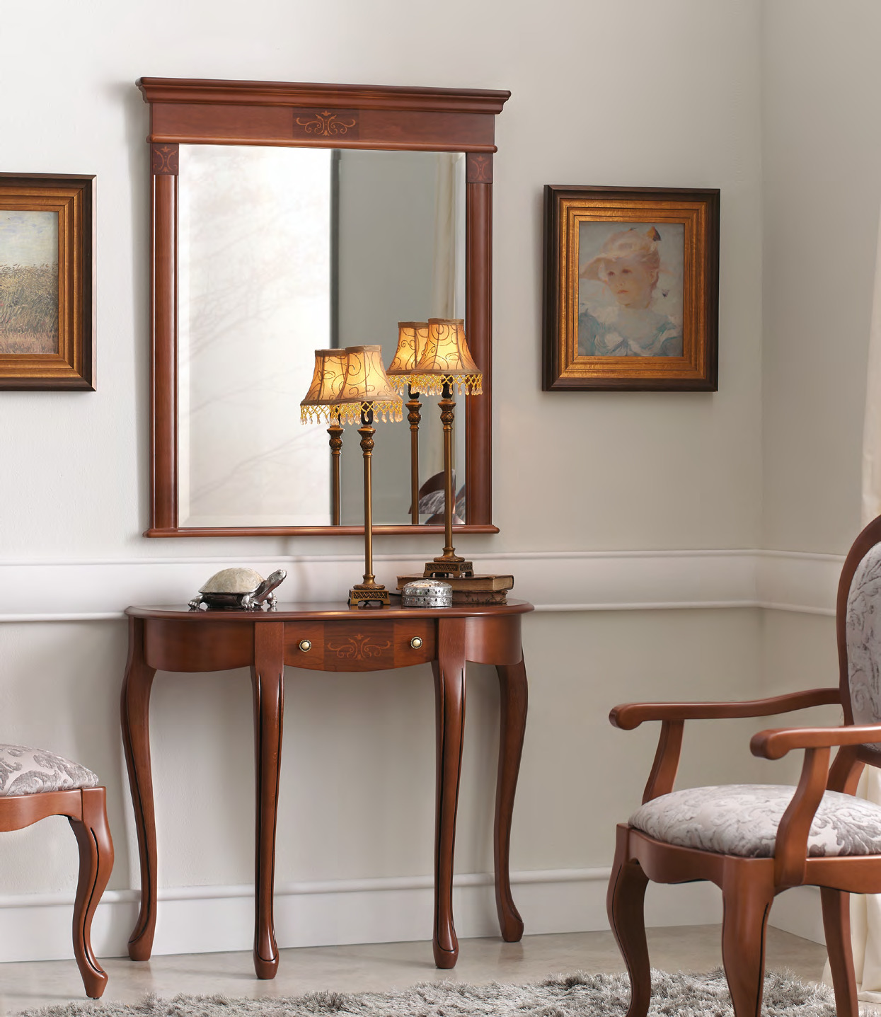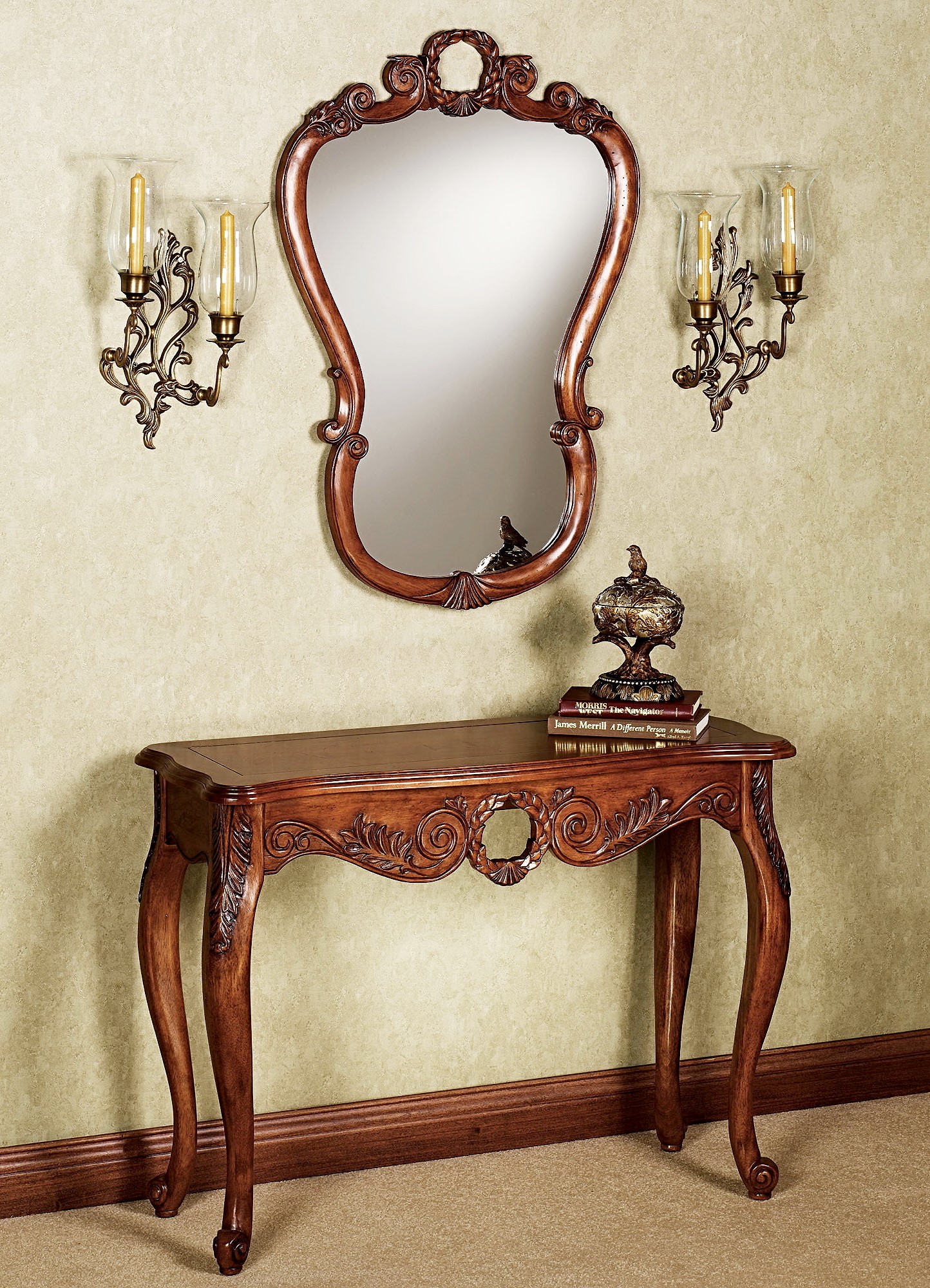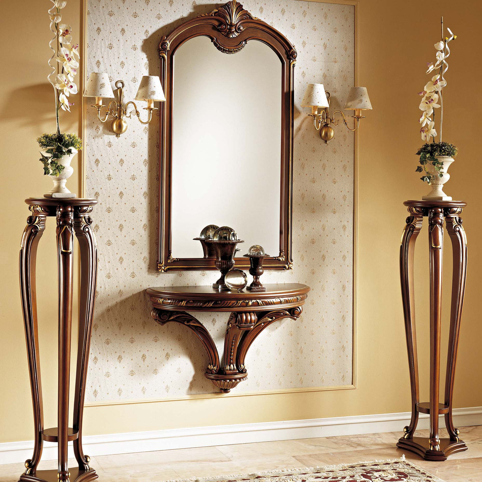 Oft bieten Hersteller ganze Sets an, die aus einer Konsole und Spiegeln in einem Rahmen bestehen, die im gleichen Stil hergestellt sind.