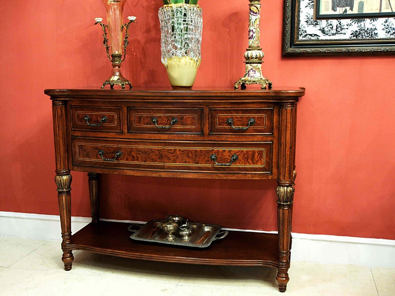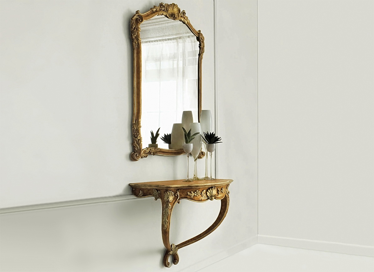 Die Konsole erschien in Frankreich. Ursprünglich das Element der Architektur genannt, das den Balkon oder die Traufe stützt. Zur Zeit von Louis XIV wurde die Konsole ein Möbelstück. Kleine Tische mit exquisiten Mustern, Schnitzereien und Vergoldungen schmückten die Säle von Prominenten.