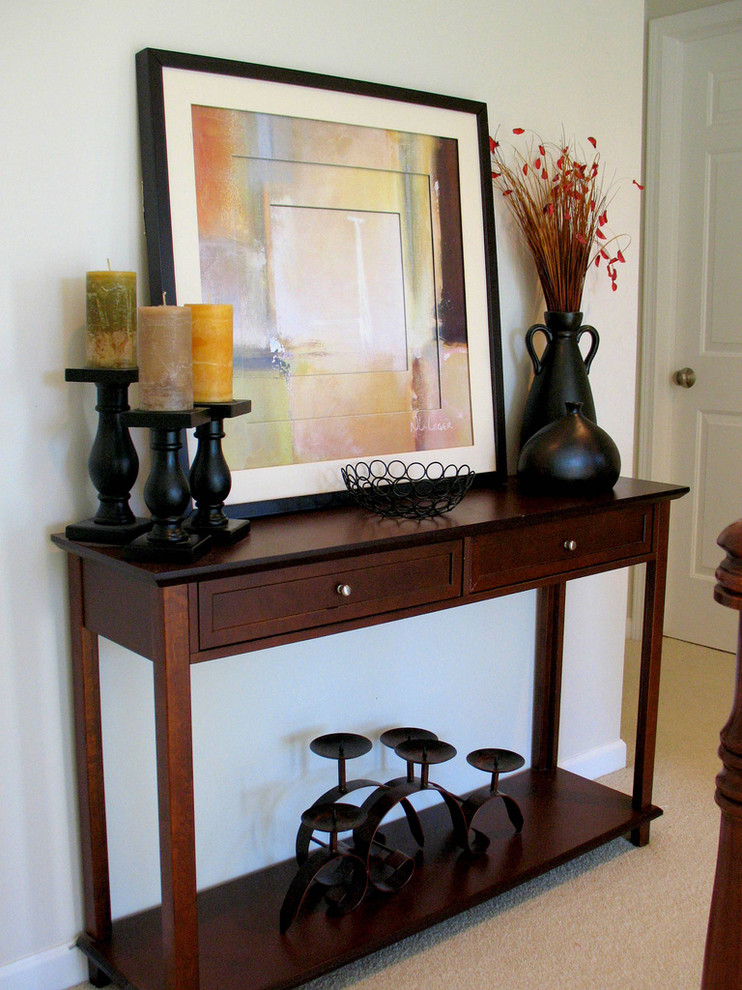 Bei der Wahl einer Konsole im Flur ist es wichtig, den Stil des Raumes zu berücksichtigen, damit sich dieses Element nicht von der allgemeinen Umgebung abhebt. Um die richtige Farbe zu wählen, müssen Sie sich auf den Schatten der Wände und anderer Möbel konzentrieren.Denken Sie daran, dass dunkle Töne auf hellem Hintergrund besser aussehen und umgekehrt.