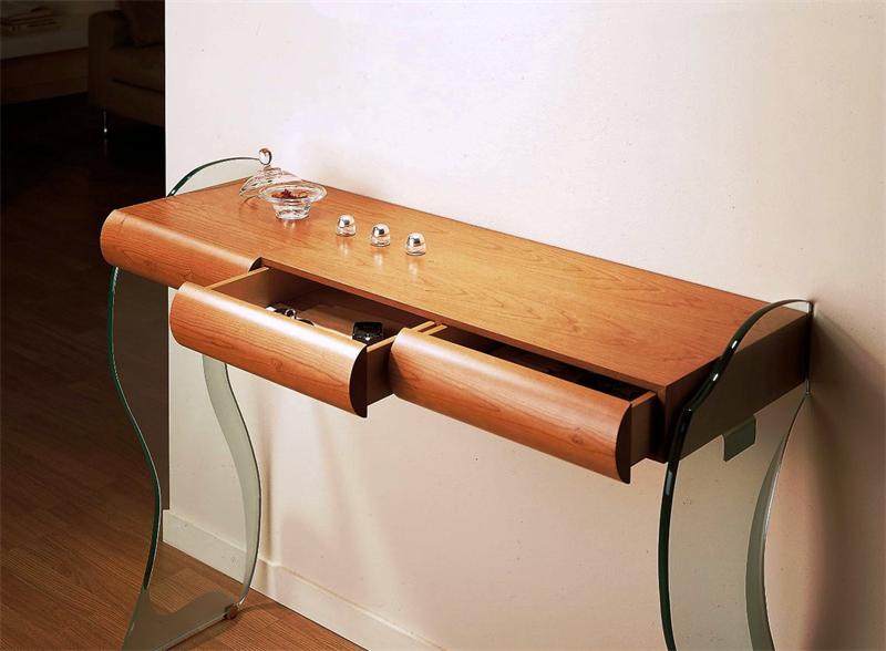 Heute ist die Konsole immer noch beliebt. Sie änderte leicht und hörte auf, ein Zeichen des Luxus zu sein, aber verlor ihren ehemaligen Charme nicht. Kompakte Wandtische sind aus verschiedenen Materialien gefertigt, und der Flug der Designer-Fantasie schafft Modelle, die in jedes Interieur passen. Die Konsole schmückt nicht nur den Raum, sie ist extrem funktional.Der Tisch dient als praktischer Ständer für verschiedene Kleinigkeiten und Dekorationsgegenstände.