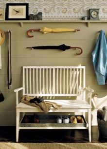 Wenn das Geschäft nur die Funktion des Sitzes ausführen soll, bevorzugen Sie geschmiedete Modelle oder mit einem Metallgehäuse. Wenn Sie im Flur keine Schränke haben, wählen Sie eine Bank mit internen Schubladen, in denen Sie Dinge aufbewahren können. Um die Hausschuhe einer großen Familie aufzuräumen, ist eine Konstruktion mit einem Regal für Schuhe erforderlich. Vergessen Sie nicht, dass die Bänke, die Teil des Headsets sind, normalerweise mehrere Funktionen kombinieren: Sie sind mit einem Ständer für das Telefon und mit Haken und mit den Schienen ausgestattet. In jedem Fall, einige Elemente und das Geschäft selbst, können Sie sich selbst machen.