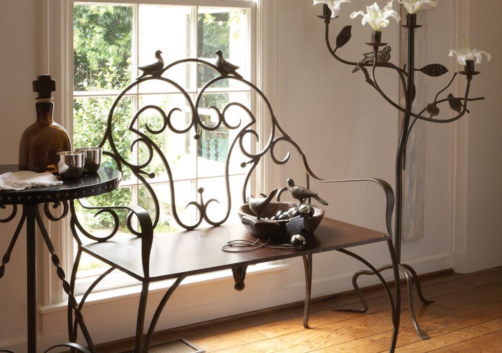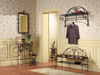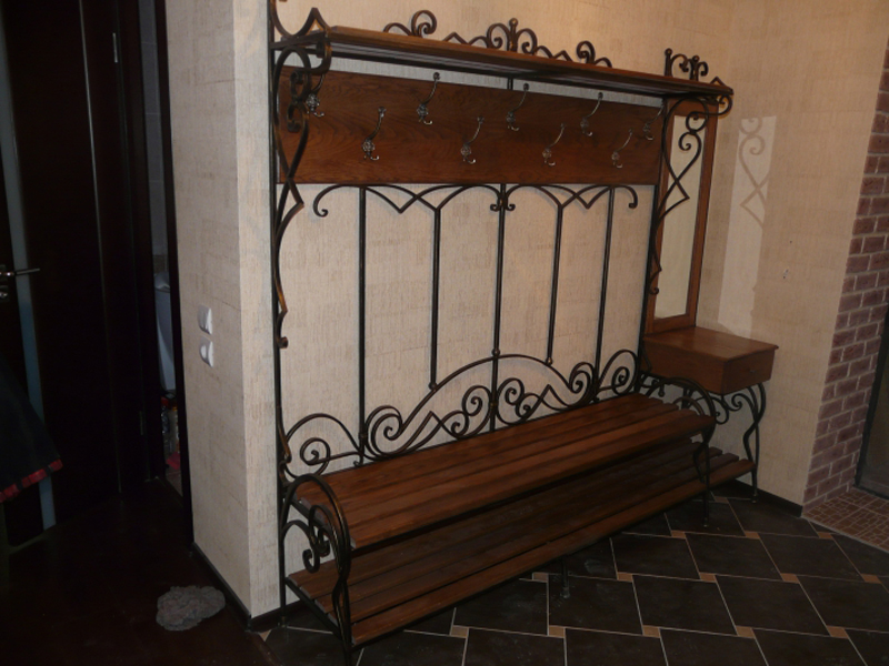 - geschmiedet. Ziemlich teuer, aber qualitativ hochwertig und zuverlässig. Sie können nur mit weichen Kissen darauf sitzen. Es ist immer ein einzigartiges Modell, geschaffen von den Händen des Meisters, elegant und schafft ein Gefühl der Leichtigkeit.Die Auswahl solcher Bänke ist fast endlos: Sie können eine Kopie in Übereinstimmung mit jeder Farb- und Designlösung des Raumes aufnehmen. Oft sind sie mit obuvnitsami und Kleiderbügeln kombiniert. Haben Sie keine Angst vor Korrosion und Verlust des ursprünglichen Aussehens - das Vorhandensein einer speziellen Schutzschicht verhindert ihr Aussehen.