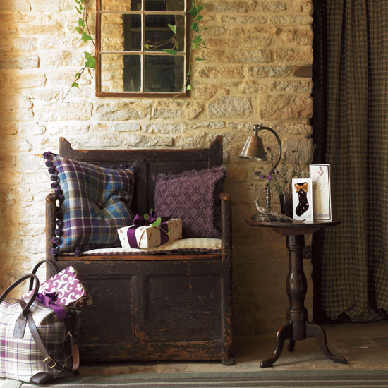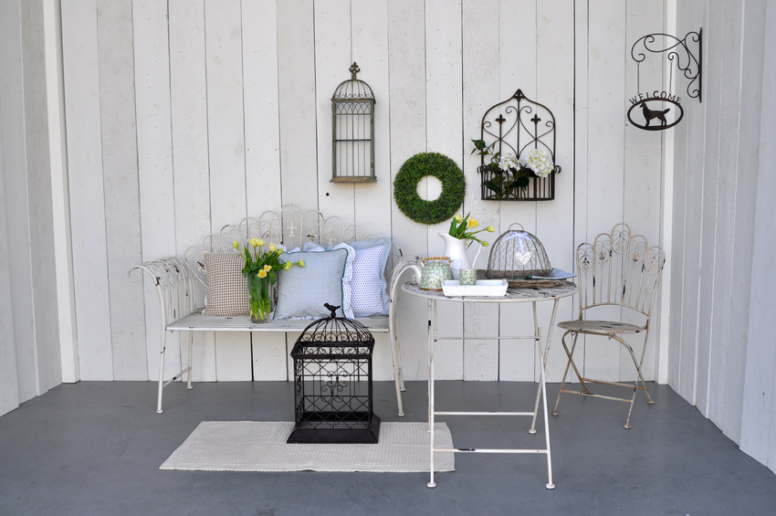 Für Landhausstil eignen sich einfache Bänke aus Holz oder Möbelplatten ohne weiche Sitze.