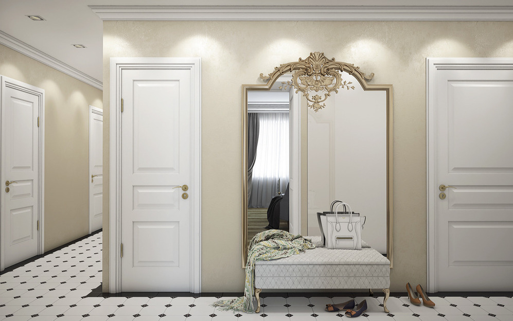 Wenn Sie eine helle Farbe wählen, wird ein Element in Ihrem Flur erscheinen, das den Ton für den gesamten Raum und von der Schwelle auf die Aufmerksamkeit der Gäste setzen wird.