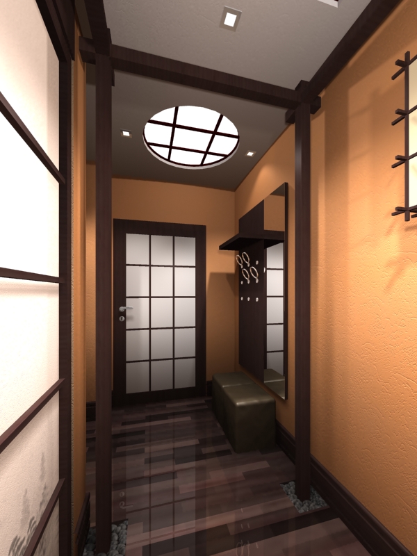 Japanischer Innenraum erfordert niedrige elegante Geschäfte kombinierten Stil. Der Rahmen sollte aus Holz und der Sitz - Leder sein. Die Rücken- und Armlehnen sind überflüssig.