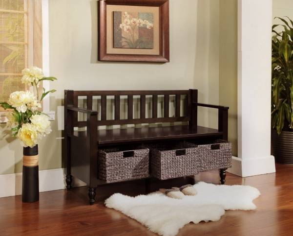 - Korbbänke aus der Rebe elegant und attraktiv, aber nicht sehr praktisch. Häufiger werden sie in Landhäusern als in Stadtwohnungen verwendet. Rattan Bänke gelten als langlebiger, aber beide Arten erfordern eine sorgfältige Bedienung, da sonst die Korbweide Elemente schnell reiben.