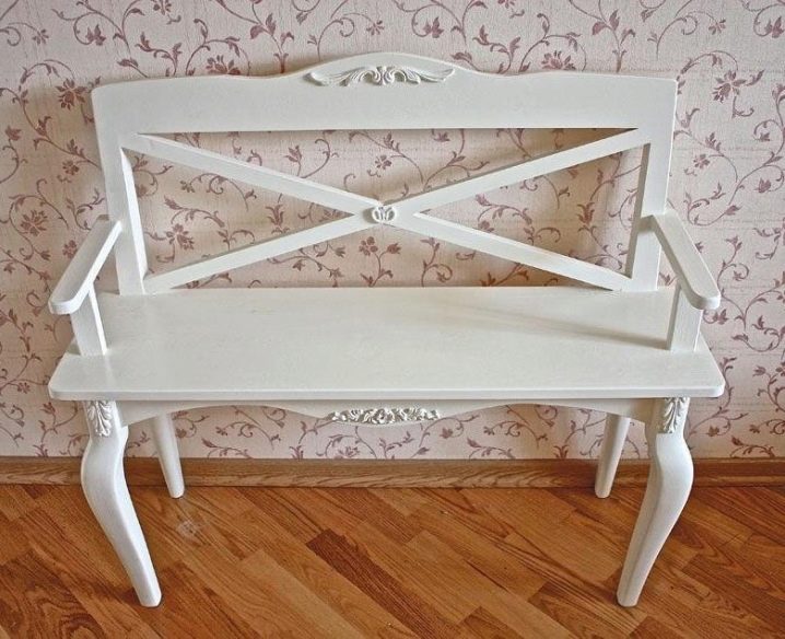 Möbel im Retro-Stil sind meist mit geschwungenen Elementen, dreidimensionalem Dekor, Schnitzerei oder Malerei verziert. Der Rücken, Armlehnen und Beine erhalten eine ungewöhnliche Form. Modelle im klassischen Stil haben eine klare geometrische Form, gedämpfte Details und prägnantes Design. Provence-Stil ist Licht, Licht, "luftige" Bänke mit hellen, oft floralen "Flecken". High-Tech erfordert Zurückhaltung, Mangel an Dekor und universellen Farben.