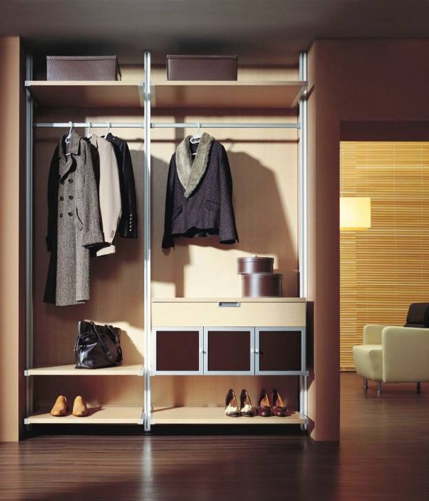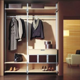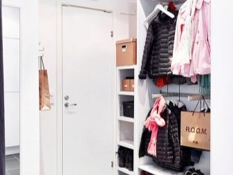 Um es Ihnen auf kleinstem Raum leichter zu machen, Ihre Sachen aufzubewahren, lohnt es sich, den Kleiderschrank so weit wie möglich zu vervollständigen. Der interne Inhalt kann alles sein, abhängig von Ihren Vorlieben. Zuerst müssen Sie bestimmen, wo alle wichtigen Dinge gespeichert werden. Um dies zu tun, ist es notwendig, einen Kleiderbügel und mehrere Regale auf einmal zu installieren. So können Sie richtig lagern und Outerwear, und Schals, und andere Details der Garderobe.