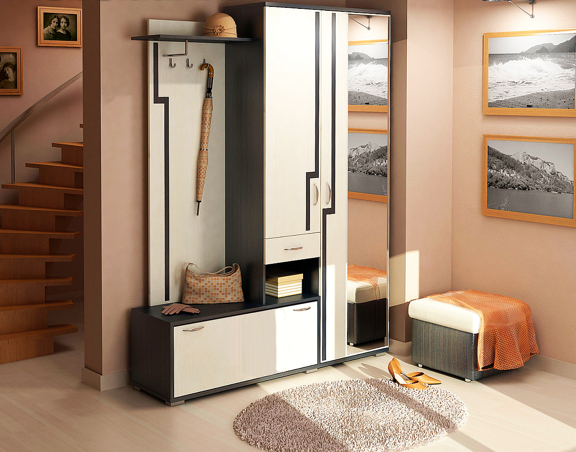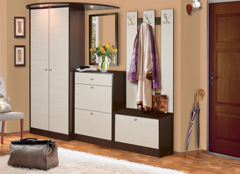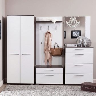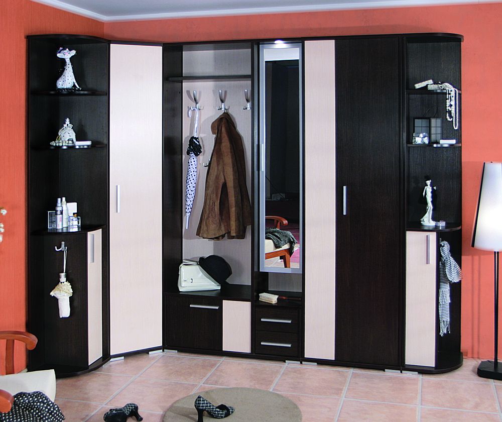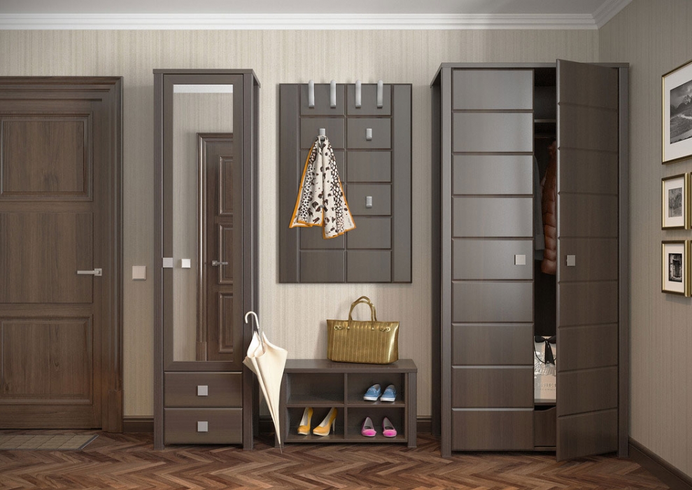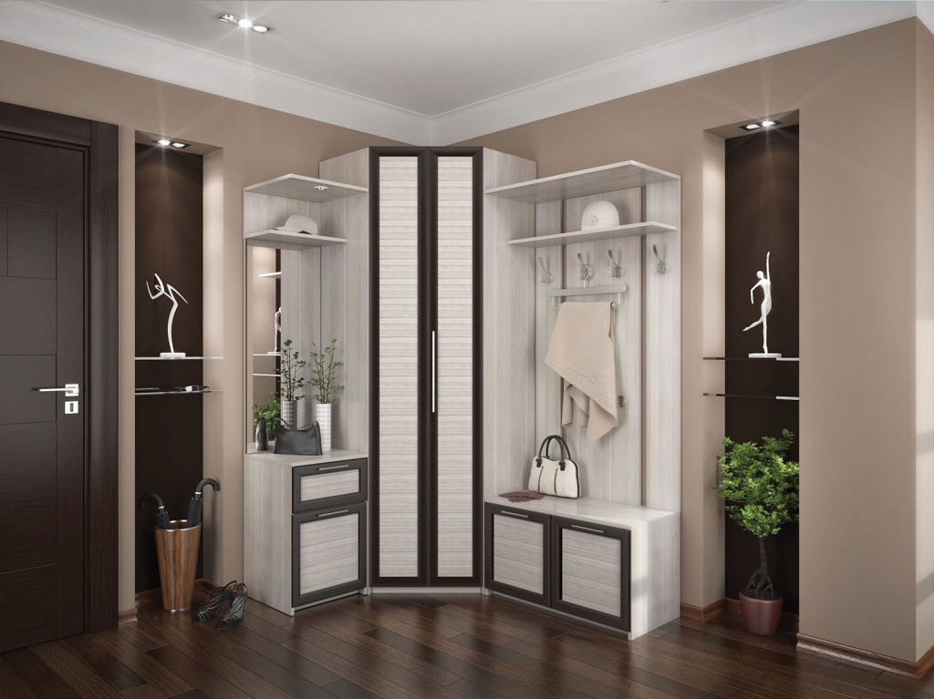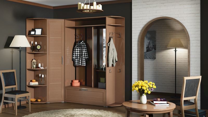 Lassen Sie sich zunächst von den Parametern des Raumes leiten. Also, für ein privates Haus mit einem großen Korridor, können Sie ein großes Set wählen, in dem all Ihre Sachen untergebracht werden, und nicht nur einfache Oberbekleidung. Für einen quadratischen Flur in einer kleinen Wohnung lohnt es sich, kompaktere Produkte zu erwerben, die an einer Wand oder in einer Ecke stehen.